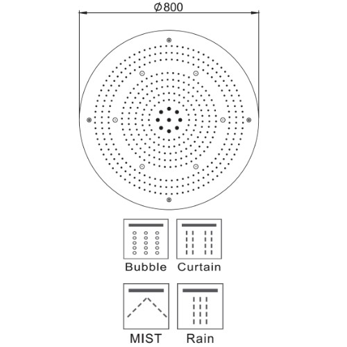 Concealed 800 Dia BUB/MIST/CURT/RAIN/LED